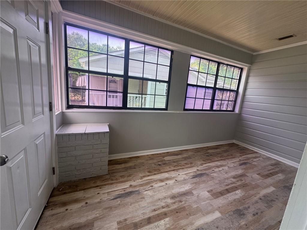 Precious brick cottage recently updated with fresh paint throughout, new flooring, and refinished hardwoods, new lighting fixtures and ceiling fans. Bathroom and kitchen have been completely remodeled. Kitchen has all new fixtures with backsplash. Bathroom is all new, new tub/shower, new toilet, sink and vanity and all new fixtures, There's an enclosed sunroom/ front porch, and a good sized, completely fenced backyard with two storage buildings.