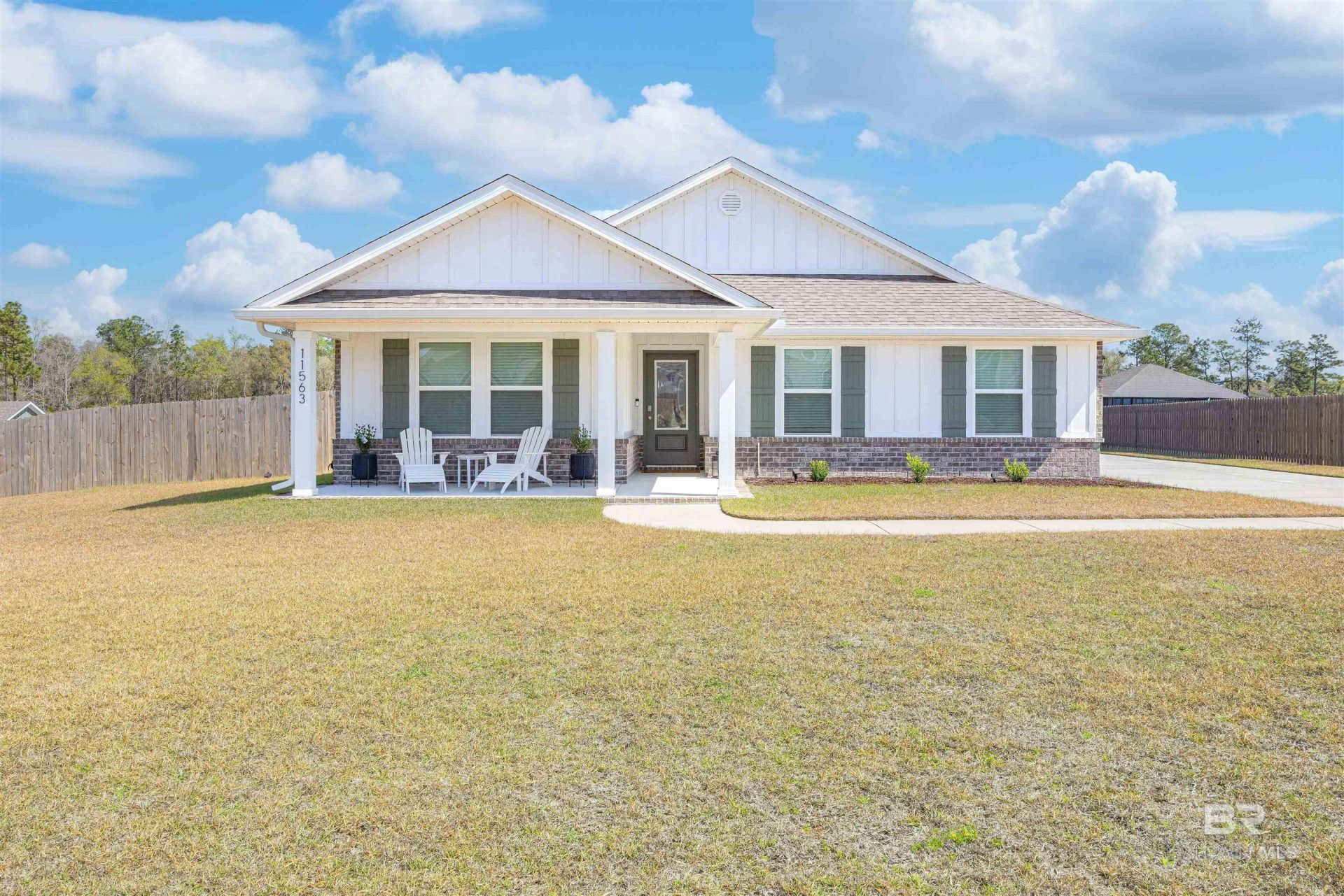 Welcome to The Reserve at Daphne, a community offering resort-style amenities, including a neighborhood pool with a relaxing lazy river. Enjoy the pavilion and BBQ area, along with a spacious recreation green?perfectly positioned across from the pool?where many neighborhood events and gatherings take place. Conveniently located near shopping, dining, golf courses, and everyday essentials, this home also offers easy access to popular attractions like OWA and the white sand beaches of Gulf Shores and Orange Beach, all just a short drive away.This well-maintained 5-bedroom, 3-bath home features a spacious open-concept layout with durable LVP flooring throughout, ideal for both everyday living and entertaining. The kitchen is designed for function and style, offering stainless steel appliances, painted cabinetry, a large island with bar seating, and a generous walk-in pantry.The primary suite provides a comfortable retreat with a double vanity, walk-in closet, separate linen closet, and a spacious walk-in shower. Additional bedrooms offer flexibility for a variety of needs such as guests, workspace, or hobbies.Enjoy outdoor living with a fully sodded yard, front landscaping, and both covered front and back porches. Enjoy a north-facing backyard with soft, indirect natural light?perfect for relaxing outdoors. The home also includes a two-car side entry garage, a Smart Home system featuring an IQ panel, video doorbell, smart lock, and thermostat.Built to Gold Fortified standards, this home may offer potential savings on annual insurance. Buyer to verify all information during due diligence.