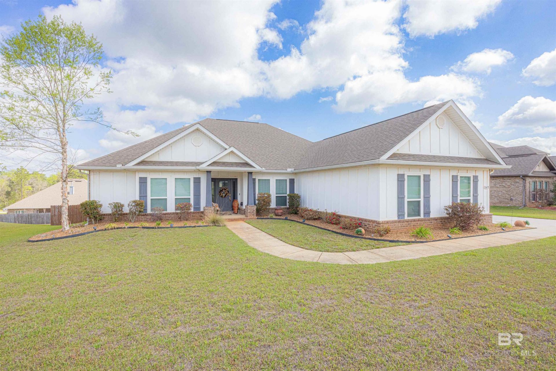 Experience The Reserve at Daphne, a community with Resort Style Amenities. Picture yourself living in this meticulously maintained popular Avery floor plan. Designed with an open-concept layout and soaring ceilings, the interior offers a seamless flow perfect for both daily life and hosting. The kitchen is a standout, featuring painted cabinetry, granite countertops, and a gas range and large island for precision cooking. The heart of the home is the spacious living area, anchored by a gas fireplace that adds a touch of warmth and character. 4 bedrooms with 3 full and 1/2 bath, 2 bedrooms share an adjoining bathroom. A separate Dining and dedicated Office or Den space. Interior details feature Custom millwork in Dining area and Drop Zone off the Garage entrance, and double tray ceilings. Primary Suite is a private retreat complemented by Separate walkin shower and soaking tub, private Toilet Closet and a large walkin closet, with additional linen closet. Enjoy a fully sodded yard with a built-in irrigation system in front yard. The north-facing backyard is a highlight, offering a shaded, comfortable setting with soft, indirect natural light throughout the day. and extended large deck off the breakfast area to enjoy your evening BBQ's or get togethers. Built Gold Fortified for insurance efficiency. Includes a two-car garage and home is plumbed for a full home generator.Residents enjoy access to a neighborhood pool with a lazy river, pavilion, BBQ area, and a spacious recreation green, where most all the community events take place. Conveniently located near golf courses, shopping, and dining, with the beaches of Gulf Shores and Orange Beach just a short drive away.Buyer to verify all information during due diligence. Buyer to verify all information during due diligence.