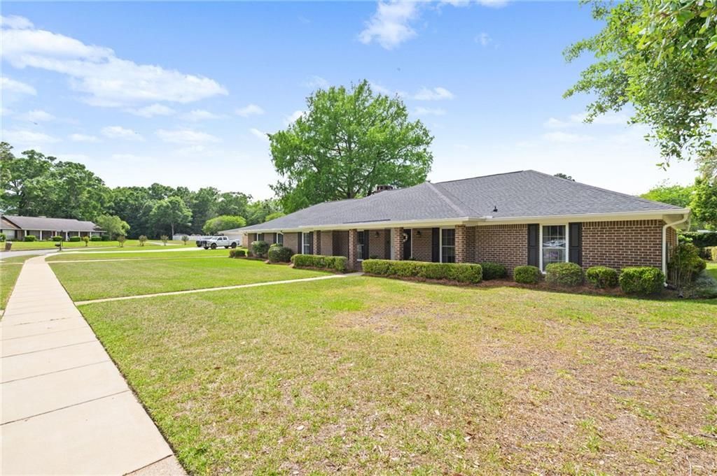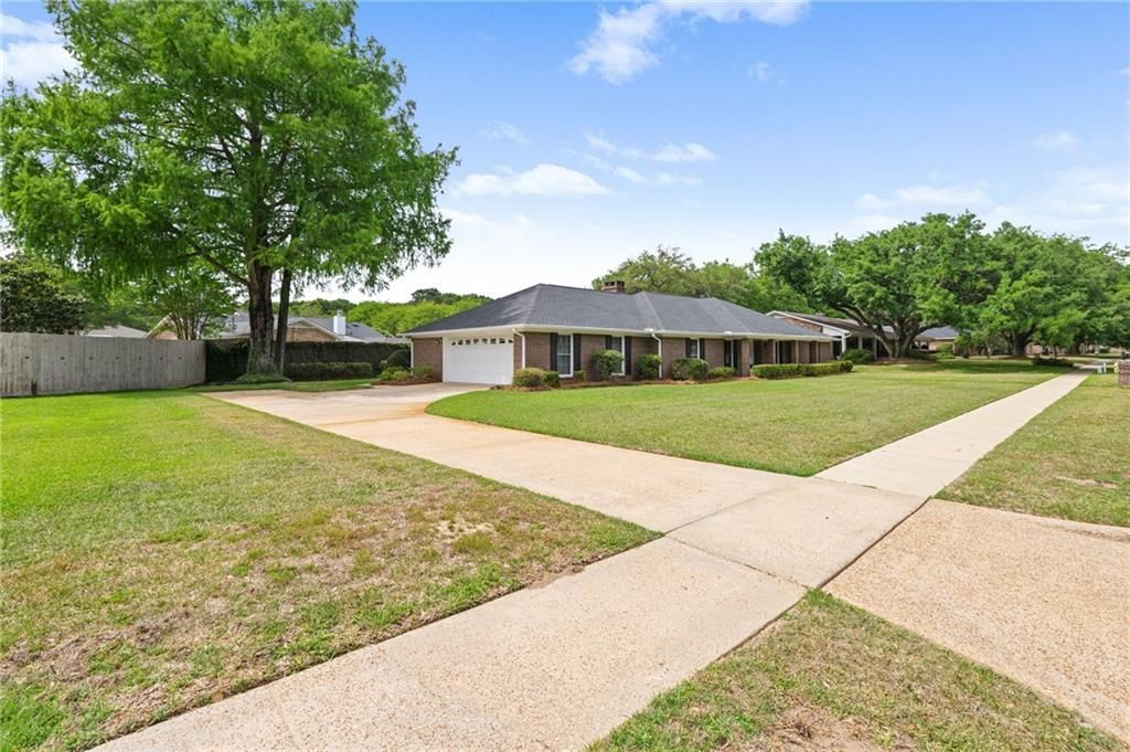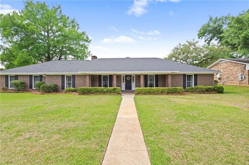 Some homes have a history you can feel the moment you walk in, and this home is one of them. This spacious home has had only two owners since it was built in 1975, and the care is evident at first glance. Tucked in Skyline Woods, one of Mobile's most beloved established neighborhoods, this home is centrally located only minutes from I-10 and I-65 allowing for easier travel, commutes or those weekends spent at the beach. With over 2,600 sq ft, 4 spacious bedrooms, 3.5 bathrooms plus a sunroom, living room, den and separate dining room, this home features all you need and more- all under one roof- and with vision, it can be all you have dreamed of! The kitchen features a true and loved southern staple- split brick flooring, double ovens, pantry and a breakfast bar. Enjoy your meals near your bay window in your kitchen area or in your separate dining room complete with custom chair molding and extra space for entertaining, holiday meals and gatherings. Your family room is conveniently located off your kitchen and features a statement brick hearth wood burning fireplace, wet bar, exposed beam ceilings and is centrally located at the center of the home. All 4 bedrooms are complete with and conveniently connected to a bath for added comfort and privacy. The spacious primary bedroom and en suite are situated at the back of the home and feature 2 large walk-in closets, double vanities plus an additional sitting vanity. The spacious lot is level and is outlined with mature lush greenery, blooming azaleas and a large front porch to sit and soak in the morning sun glow or evening sunsets. The 2-car garage is attached, and the major systems are solid: FORTIFIED architectural shingle roof (2021), all new windows (2008), updated HVAC, water heater, and a transferrable termite bond. Ready for its next chapter. Cosmetic updating may be preferred and the opportunity is priced accordingly. This home is one of the homes you walk in and can feel the love and care it was given. Come make this beautiful home your own and start living with extra space today!Buyer and/or buyers agent to verify all information deemed reliable. Welcome Home!