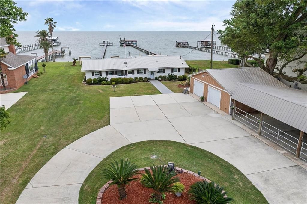 Gorgeous Waterfront Home with stunning Bayfront views from sunrises to sunsets! Discover the ultimate bayfront lifestyle with this rare opportunity that blends the charm of a furnished classic bay house with modern updates, income potential, and breathtaking panoramic views of Mobile Bay. Situated on 1.12 acres, this 4-bedroom, 2.5-bath brick home with over 2,000sq.ft of living area features 103 feet of waterfront, pier, with a covered dock, an outdoor cooking area, and endless opportunities for fishing, boating, crabbing, and swimming. Step inside to find tile flooring throughout, guiding you into a thoughtfully designed open floor plan-ideal for both entertaining and everyday living. The chef's kitchen is a showstopper, offering granite countertops, a 48 inch 8-burner gas cooktop, stylish finishes, and a breakfast bar that flows seamlessly into a spacious dining area. The living room, accented with plantation shutters and sweeping bay views, adds to the home's inviting and tranquil atmosphere. Just off the family room with fireplace, you'll find the private master bedroom complete with soft, elegant color tones and a beautifully updated ensuite bath. To the left of the kitchen are three additional generously sized bedrooms, and more gorgeous bay views, offering both comfort and privacy for family or guests. A sunroom provides access to outdoor covered kitchen, patio, decks, one of which features a central fireplace pit,private entry with a circular drive, a detached double garage, and a 3-car carport, offering ample space for vehicles, boats, or RVs with 30amp access, whole house Generator and metal Roof. Location is prime being just minutes away Dauphin Island, 1-10, Downtown Mobile, Mississippi, Airport and the Eastern ShoreBuyer responsible for verifying all measurements and relevant details.