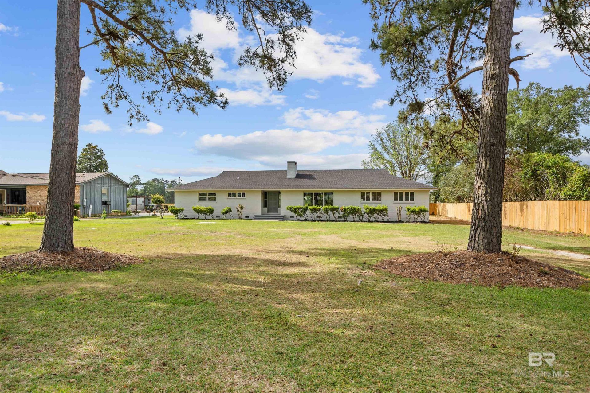 This nicely updated property offers a convenient location less than 10 minutes from both Foley and Magnolia Springs, placing you close to schools, shopping, dining, and local hospitals, with the beautiful white sand beaches of the Gulf Coast just a short drive away. Set on just over half an acre with no HOA, you'll enjoy extra space and flexibility while still being near everything you need. Recent updates include fresh interior and exterior paint, new LVP flooring, and a new privacy fence. This ranch-style home features 3 bedrooms, 2 bathrooms, a sunroom, and 1,982 square feet of living space. Inside, the living room offers a cozy fireplace with a brick surround, creating a warm focal point. The kitchen features tile flooring, granite countertops, a gas stove, tile backsplash, and an island with storage and seating, along with an adjacent dining area. The primary bedroom includes a walk-in closet and an ensuite bathroom with a double vanity, granite countertops, and a large tiled walk-in shower. The second bedroom also offers a walk-in closet and its own ensuite bath, while the third bedroom features French doors opening to the sunroom, making it a great option for a home office or flex space. The sunroom flows into a screened porch, providing additional space to relax and enjoy the outdoors. Outside, you'll also find covered parking accessible from the rear of the home, along with a large attached storage room that could easily be used as a workshop or additional storage space. Don't miss the opportunity to enjoy a move-in ready home with space and flexibility in a convenient location! Property may be subject to Alabama right of redemption laws. Buyer to verify all information during due diligence.
