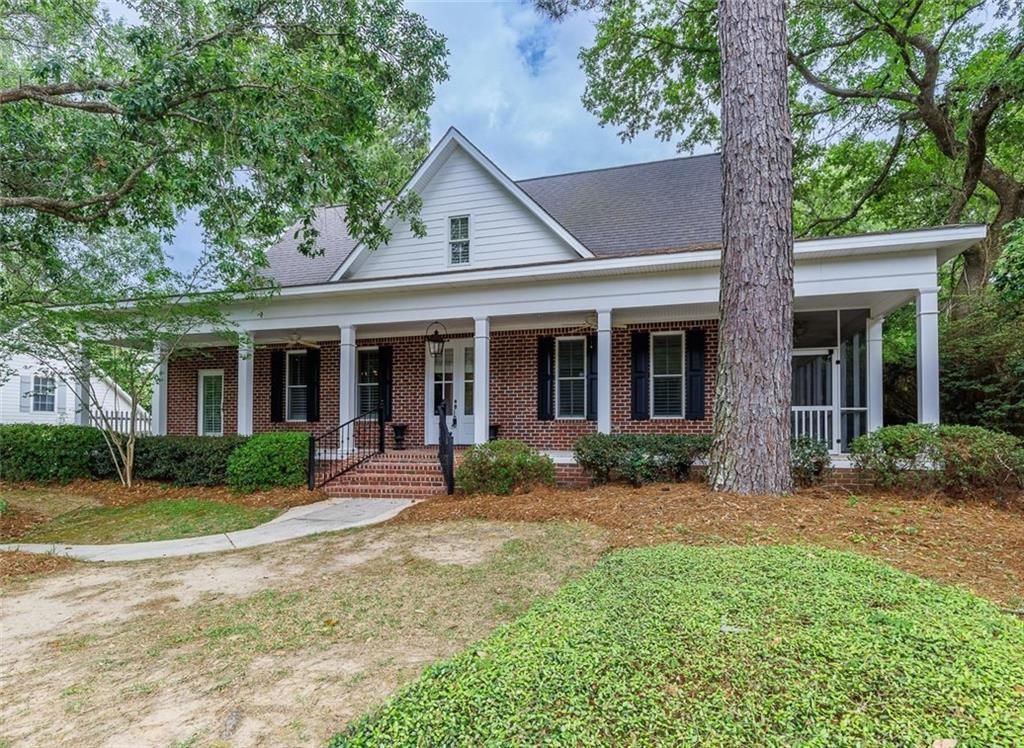 Downtown Fairhope Cottage with Wrap Porch, Main-Level Primary Suite, and Updated Interior Located in downtown Fairhope, Alabama, this brick cottage offers convenient access to town and Mobile Bay, along with established landscaping and mature live oak trees. The home features an oversized wrap porch, providing covered outdoor space suitable for seating and entertaining. Entry is through double front doors into a traditional foyer. The dining room is positioned at the front of the home and may also function as an office or study. The kitchen includes a built-in refrigerator (approximately 1 year old), microwave drawer, Viking gas range, eating bar, and ample storage. A utility room is located off the kitchen and includes additional storage space. The primary bedroom is located on the main level and features hardwood flooring, an en-suite bath, and access to a private screened porch. Upstairs includes additional bedrooms and a flex room suitable for office, hobby, or storage use. The backyard is designed for manageable maintenance and includes established plantings. A heated and cooled double garage provides additional space and functionality. Interior updates include renovations completed throughout the home, including plumbing updates. Buyer to verify all information during due diligence.