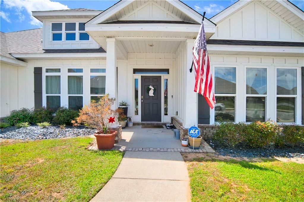 Impressive curb appeal with this spacious Craftsman design in Primland of Foley. Convenient location near shopping & recreation with easy access to the Beach Expressway. Gold fortified and built in 2021. Light and airy floor plan with formal dining and study/office off the foyer leading to a huge great room with 10' ceilings and 12' tray, gas fireplace and French door to enclosed back porch and privacy fenced yard. Open plan design with kitchen and breakfast area, over sized island bar, gas range and spacious pantry. Popular design with primary bedroom and bath with large walk in closet. Split plan offers 3 additional bedrooms on the opposite side with 2 full baths. Level privacy fenced back yard and double garage. HOA amenities include tennis courts, pool and clubhouse. Buyer to verify all information during due diligence.